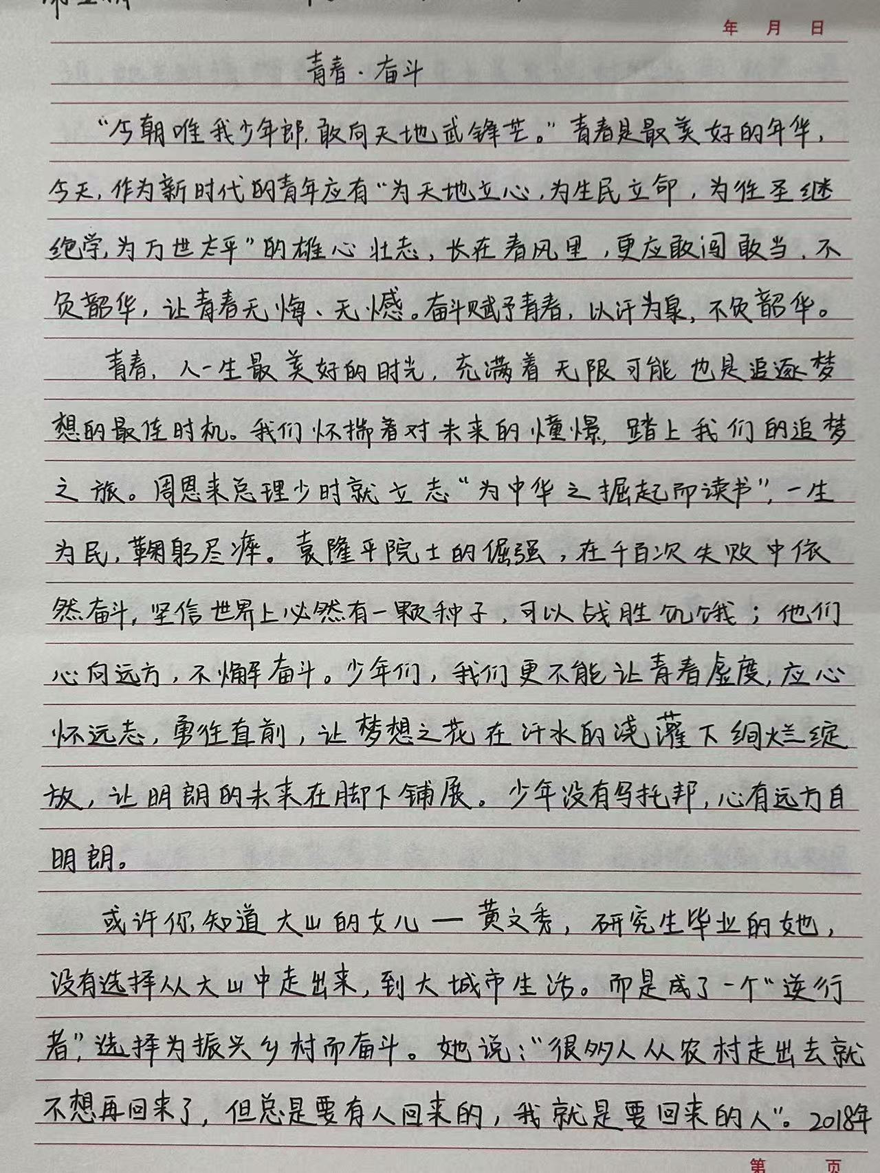 为深入贯彻落实习近平总书记关于青年工作的重要论述,进一步丰富校园文化生活,搭建具有时代特征、青年特点的大学生校园科技艺术活动平台,激励大学生坚定理想信念,厚植家国情怀,组织动员广大团员和青年为我校高质量发展贡献青春力量,以实际行动喜迎中华人民共和国成立75周年,亚洲精品内射口爆开展了以“执青春之笔,写奋斗华章”为主题的庆祝中华民族共和国成立75周年的征文活动。