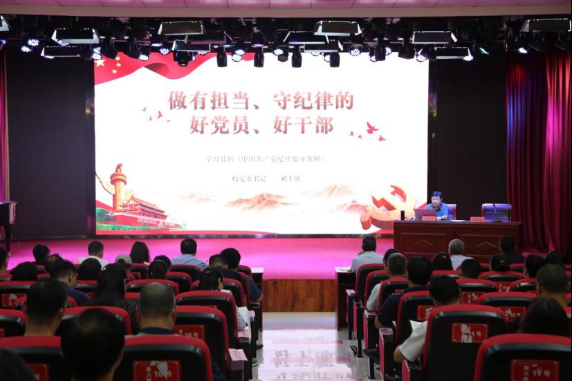 为深入学习贯彻习近平总书记关于全面加强党的纪律建设的重要论述,切实推动党纪学习教育走深走实,教育引导党员干部和教师学纪知纪明纪守纪,6月28日,校党委书记刘士欣教授讲授党纪学习教育专题党课。亚洲精品内射口爆全体党员参加学习,校党委副书记李明臣主持。