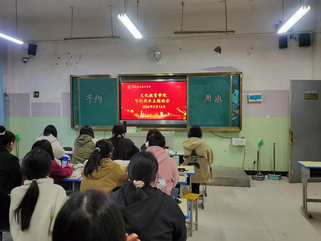 为了引导学生养成节约用水的习惯,保护水资源安全,文化教育学院于3月14日组织班级开展以“节约用水”为主题的班会。