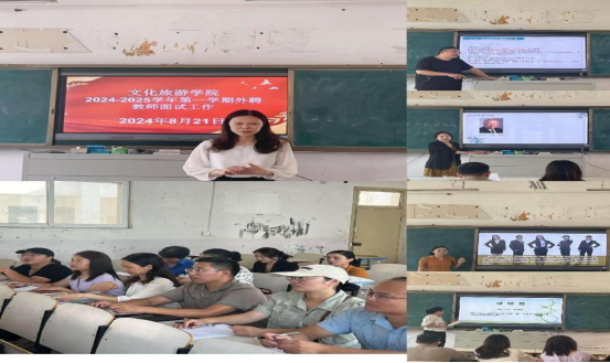 为保证教学质量,优化优化外聘教师队伍,2024年8月21日下午,学院组织开展了外聘老师面试工作,院长史丽珍、副院长李炯以及各教研室主任组成现场评审团。