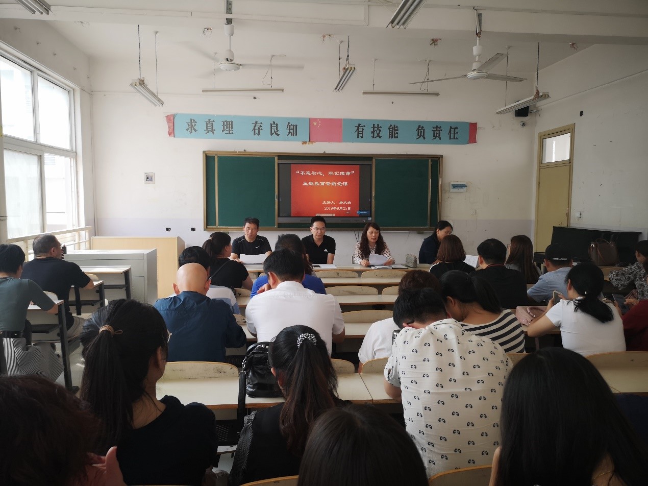唐书记根据学校“不忘初心、牢记使命”主题教育部署会精神,要求全体党员提高认识,把开展主题教育作为当前的一项重要政治任务;把握准确的目标要求,围绕习近平新时代中国特色社会主义思想,持续深化理论学习;围绕“守初心、担使命,找差距、抓落实”,在教育教学、检视问题中悟初心、守初心,在整改落实、解决问题中勇作为、践使命。