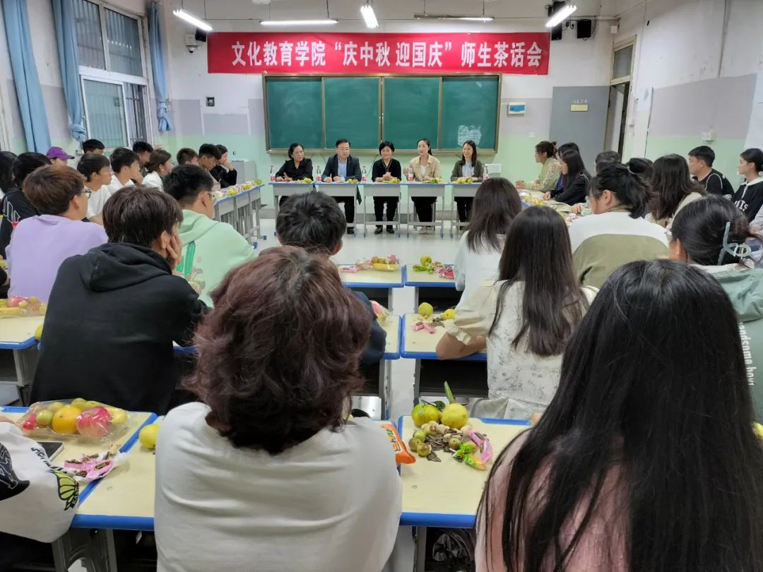 为弘扬中华优秀传统文化,营造欢乐祥和的节日氛围,让文化教育学院留校新生度过一个温馨美好的中秋、国庆双节,9月28日下午,文化教育学院举办“庆中秋 迎国庆”师生茶话会。副校长于爱霞、学生处处长刘冬霞、文化教育学院党总支书记展贤东、院长史丽珍、副院长于慧娟、学管办主任普俊出席活动。