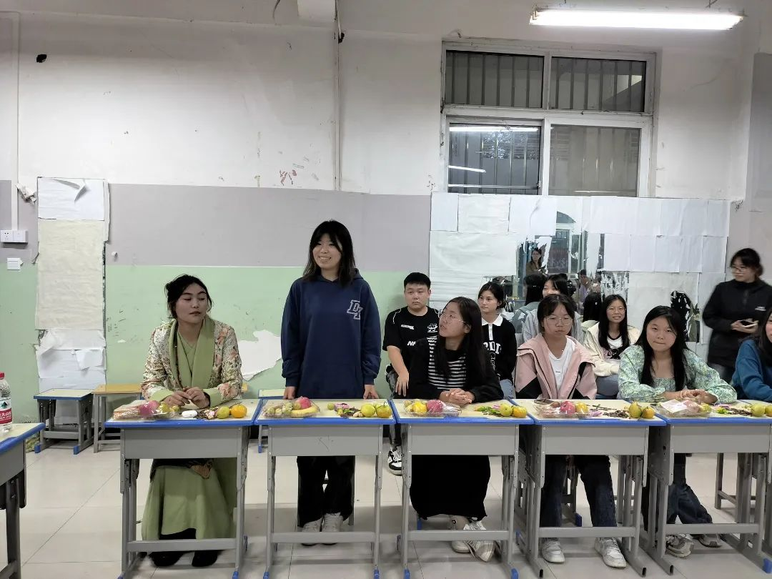 轻松的交流氛围,堆成小山的零食、水果、月饼迅速拉近同学们的距离,大家边吃边聊,畅所欲言。