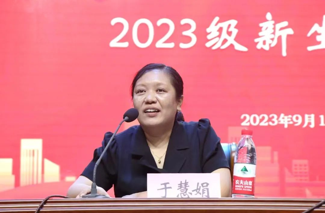 大会伊始,于慧娟副院长代表全院师生向来自五湖四海的新生致以最热烈的欢迎和最衷心的祝贺。随后她从学院概况、目标定位、师资队伍、教学资源等方面对学院进行了详细的介绍,让同学们对学院有了更为深入的认识与了解。并希望同学们将自身前途命运同国家民族前途命运紧紧联系在一起,坚定理想信念,勇攀时代高峰。