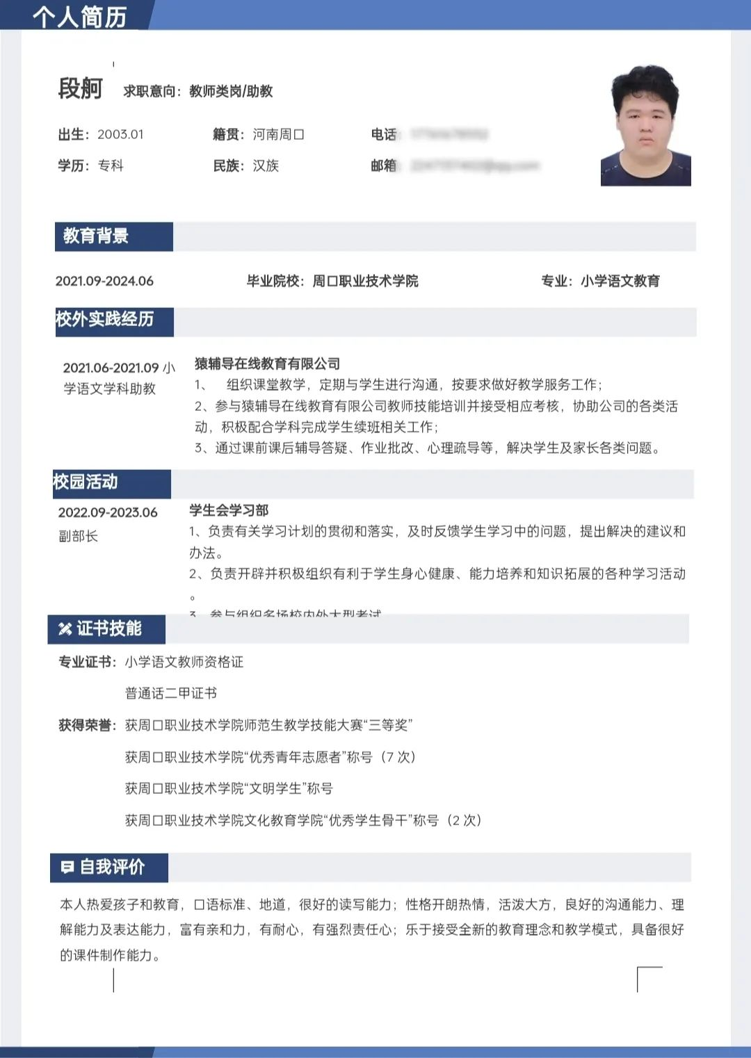 “简”自我风采 “历”职场未来周口职业技术学院文化教育学院举办2023年简历设计大赛