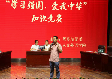 人文外语学院根据周职院团委关于周职院第十三届校园科技文化艺术节的整体部署,积极承办 “学习强国,爱我中华”知识竞赛活动,该活动于5月26日晚在励德厅成功举办,该活动由团总支书记童国强主持,来至我院和机电工程学院的8个代表队共40名参赛选手,800多名同学参加。活动以“学习强国”学习平台知识为主要内容,分为初赛和决赛两个环节。竞赛中选手们精神饱满、抢答积极,并沉着、冷静地应对主持人的提问,既体现出个人风采,又展现出团队合作精神,现场高潮迭起、气氛热烈、掌声不断,精彩纷呈。