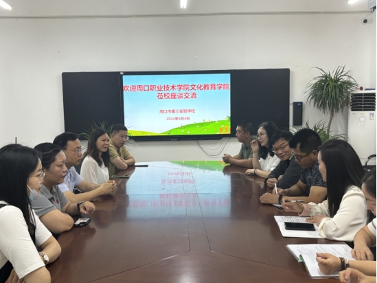 我院党总支书记展贤东、院长史丽珍介绍了学院的基本情况以及开展访企拓岗的目的和意义。同时,对周口市第三实验学校先进的办学理念、科学的管理机制、强大的师资力量、完善的教学设施、良好的办学环境表示赞赏,希望校院双方加强联系交流,共同助力高校毕业生就业。