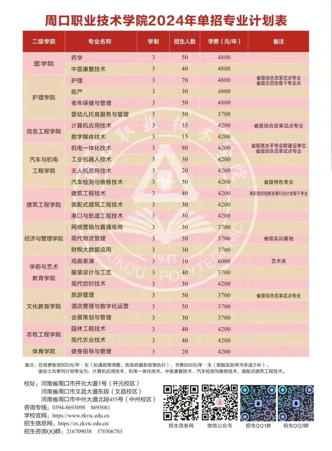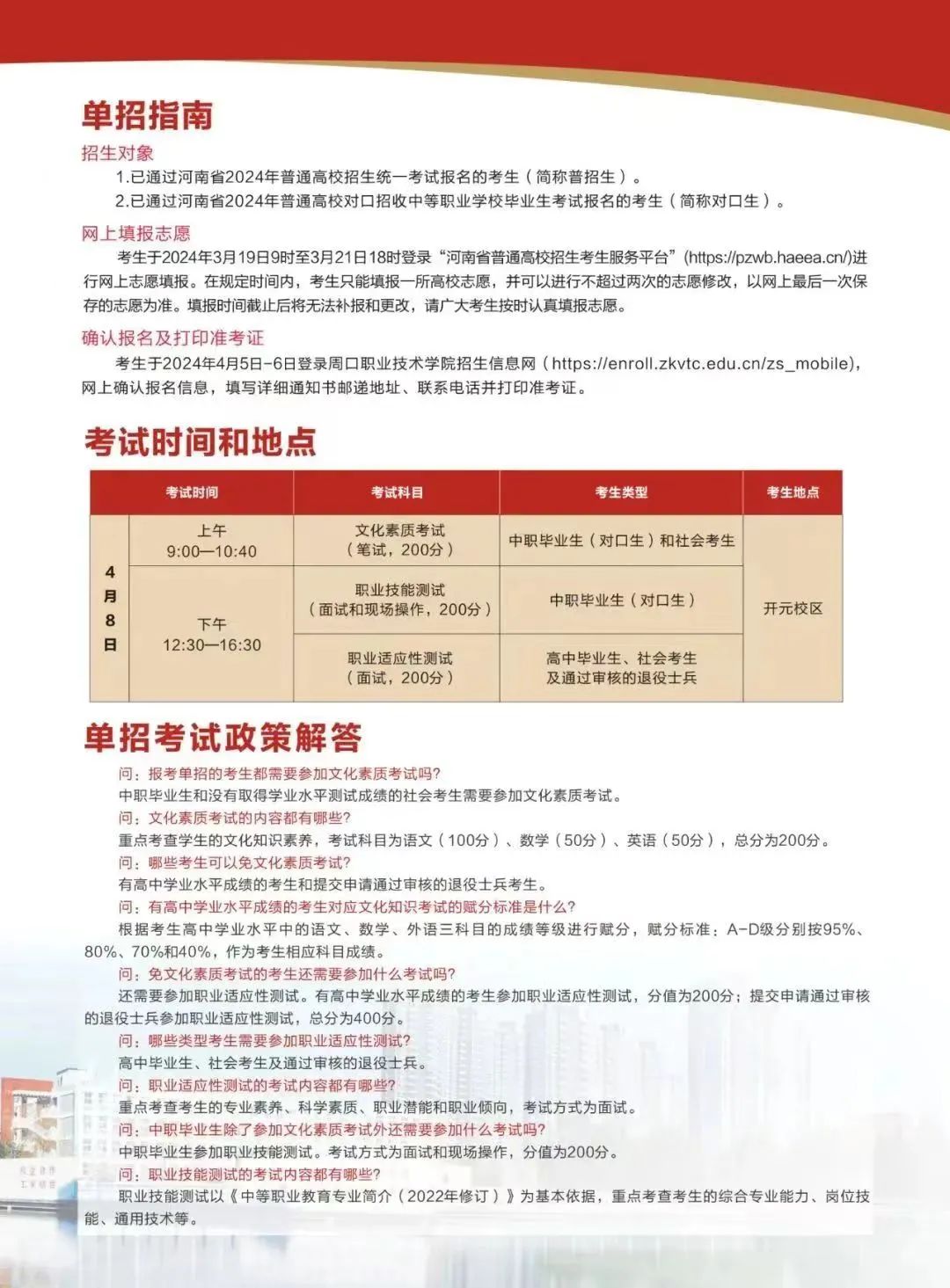 周口职业技术学院2024年单招简章