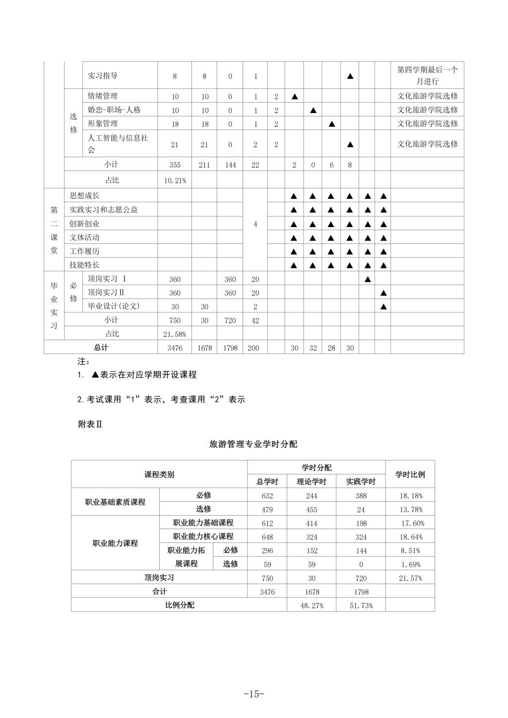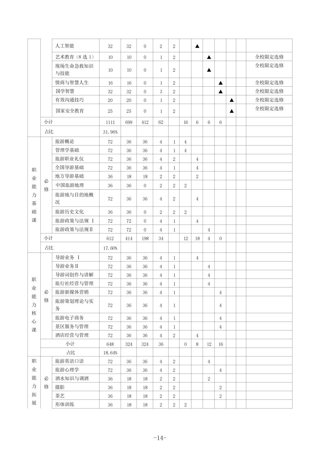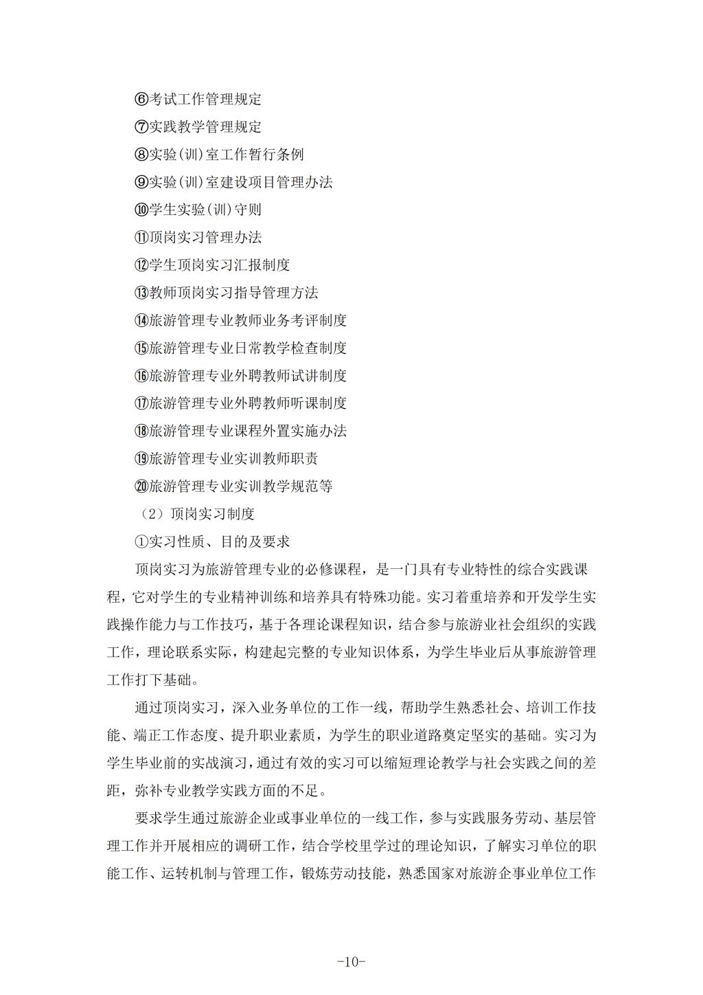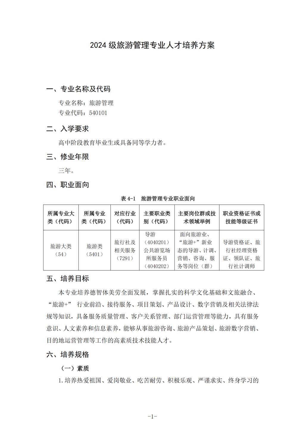 主干课程:管理学基础、旅游概论、中国旅游地理、旅游职业礼仪、导游基础、导游业务、旅游政策与法规、旅行社经营与管理、旅游新媒体营销、导游词创作与讲解、旅游历史文化、旅游策划理论与实务、旅游电子商务、景区服务与管理等。